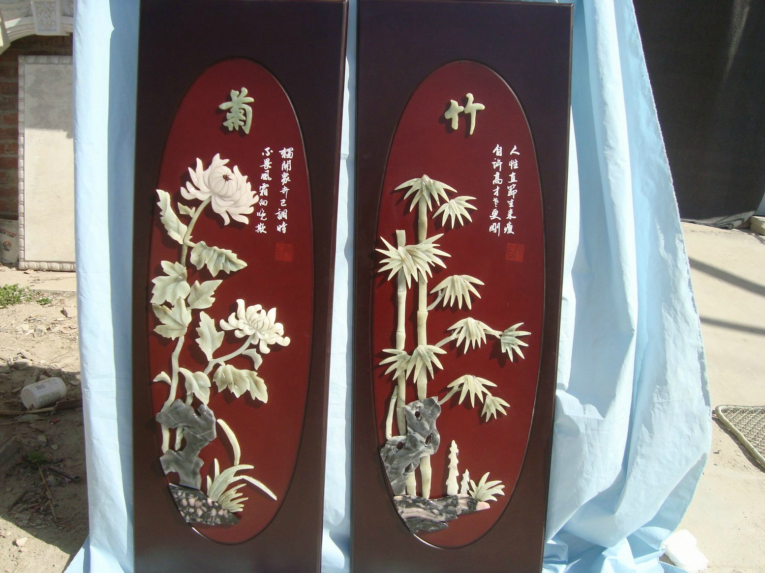 A large amount of natural talc jade four fan screen finely carved spring, summer, autumn, winter jade paintings for home decor quantity