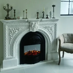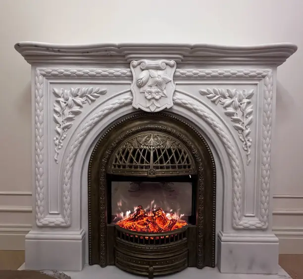 Custom-made and processed new European and French light luxury style natural stone marble fireplace with birdcage simulation fire heating core