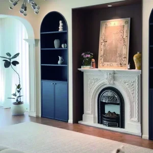European-style marble fireplace, white marble hand-carved, retro style, villa clubhouse living room, light and luxurious style decorative cabinet