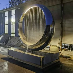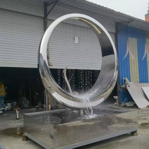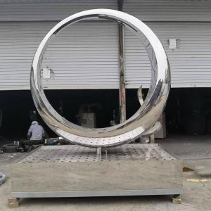 Customized large stainless steel sculpture with Mobius circular ring, glowing moon, metal ornament, outdoor flowing ribbon