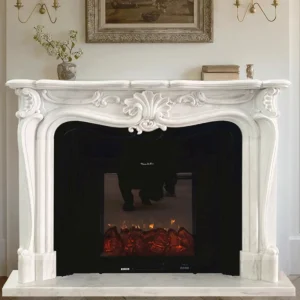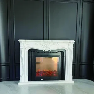 Marble fireplace, white marble European-style arched door, villa living room stone-carved fireplace, decorative cabinet, natural stone fireplace mantel.