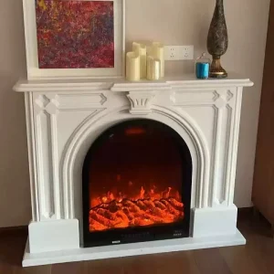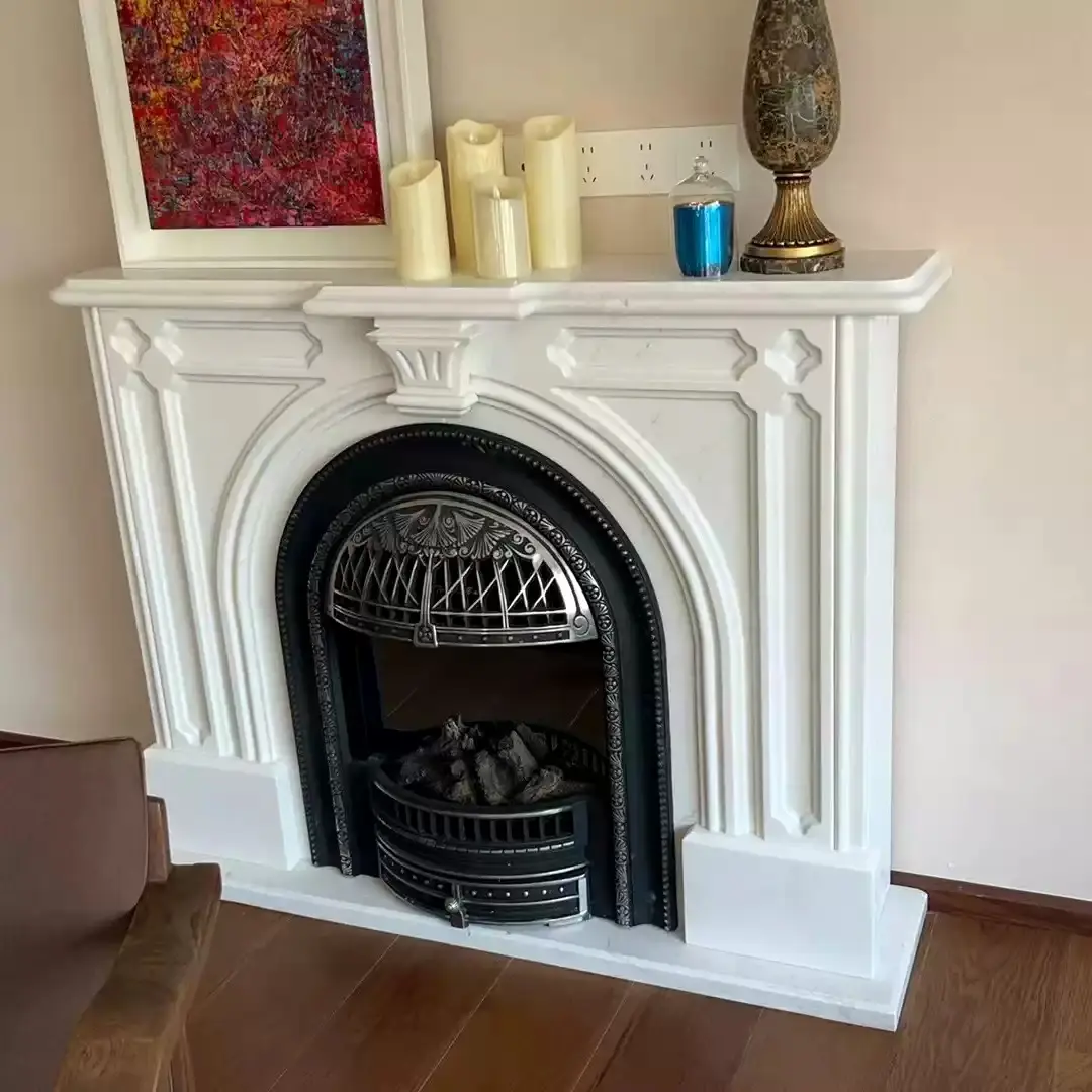 European-style marble fireplace, white marble hand-carved, retro style, villa clubhouse living room, light and luxurious style decorative cabinet