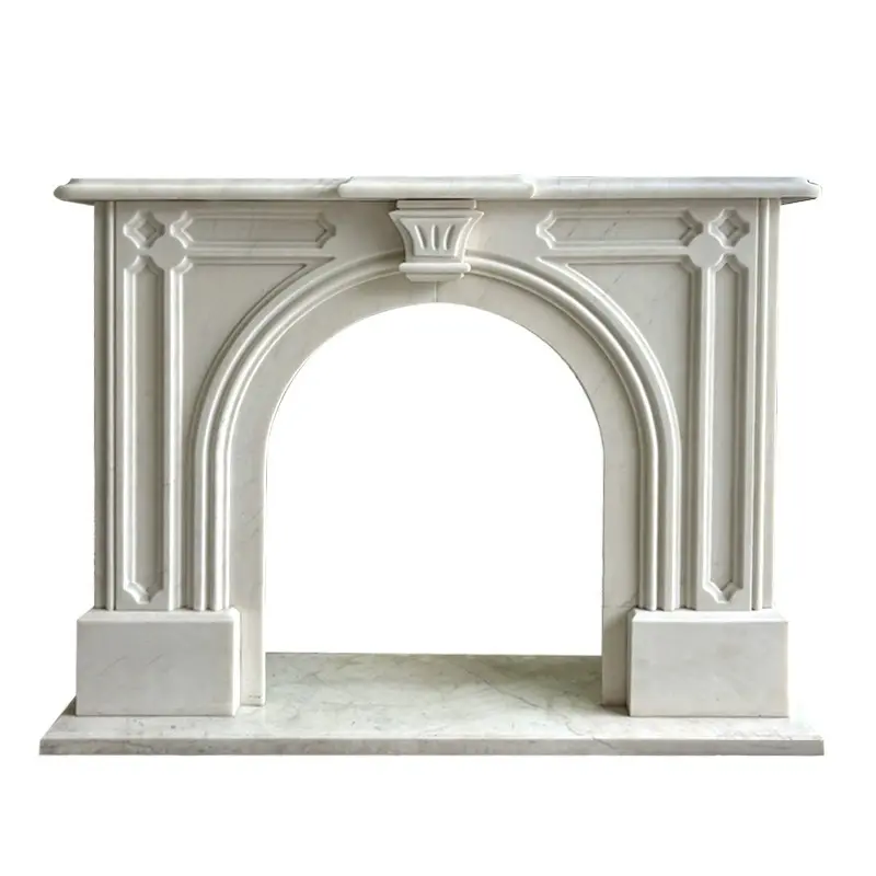 Natural marble European-style fireplace mantel, European-style carved decoration cabinet, custom-made stone and stone carving for villa living room.