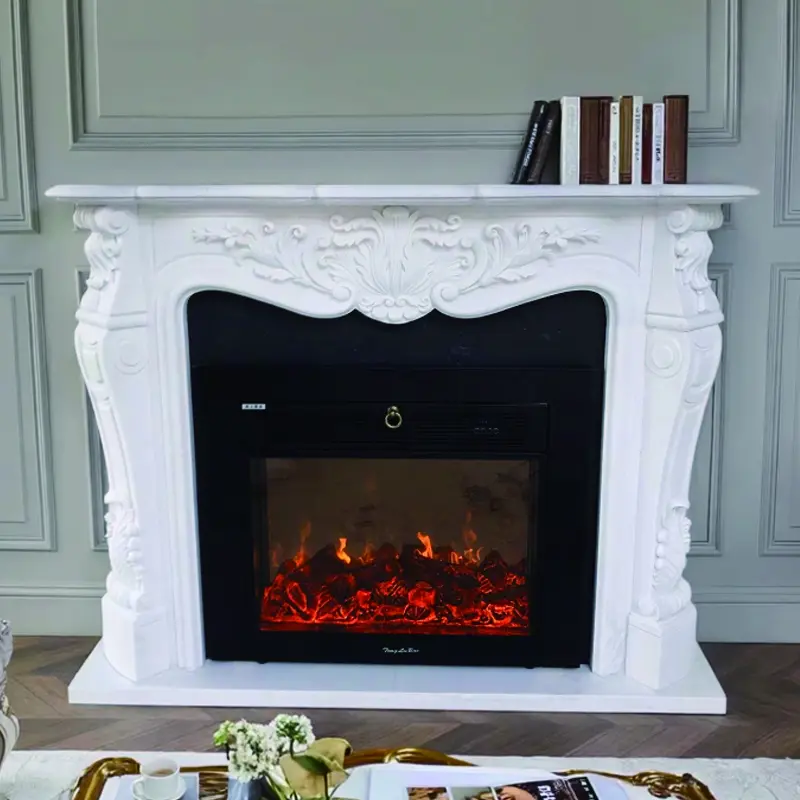 European-style marble fireplace, white marble hand-carved, retro style, villa clubhouse living room, light and luxurious style decorative cabinet