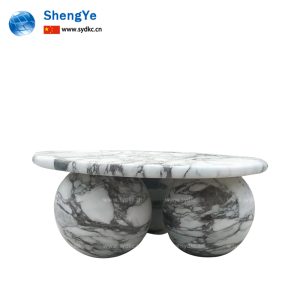 Creamy style natural limestone coffee table. Scandinavian popular marble living room minimalist chic round coffee table.