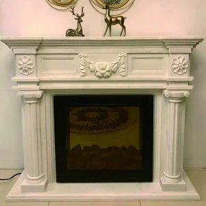Marble carved fireplace, European and American style, simple stone TV decoration cabinet, modern fireplace wall decoration, relief flower, wall hanging.