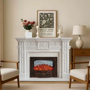 Marble European carved fireplace, white marble American simple French fireplace, villa living room decoration cabinet and ornaments.