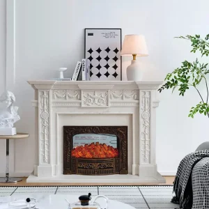 European-style marble fireplace, white marble hand-carved, retro style, villa clubhouse living room, light and luxurious style decorative cabinet
