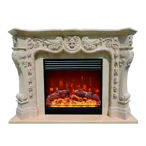 Marble fireplace, European-style villa stone-carved fireplace mantel, American and French living room. Egyptian beige stone fireplace TV cabinet.