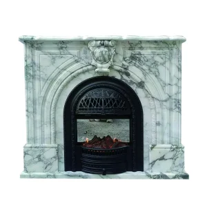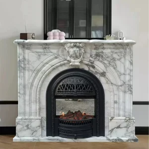 Natural marble European white rice fireplace stand with European decorative carving. Customized stone carving cabinet for the villa living room.