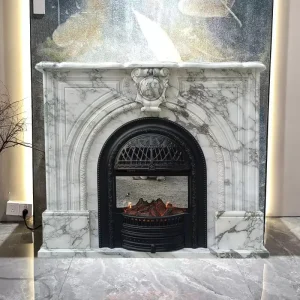 Marble fireplace, white marble European-style arched door, villa living room stone-carved fireplace, decorative cabinet, natural stone fireplace mantel.