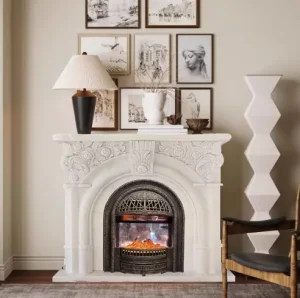 Marble fireplace French relief white marble stone carving European light luxury simple home decoration TV cabinet fireplace stand for living room