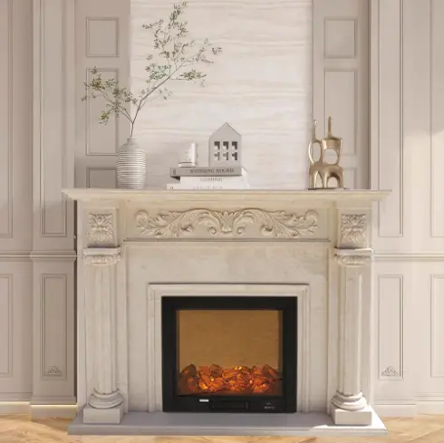 Natural marble fireplace