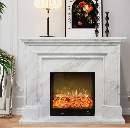 Marble European carved fireplace, white marble American simple French fireplace, villa living room decoration cabinet and ornaments.