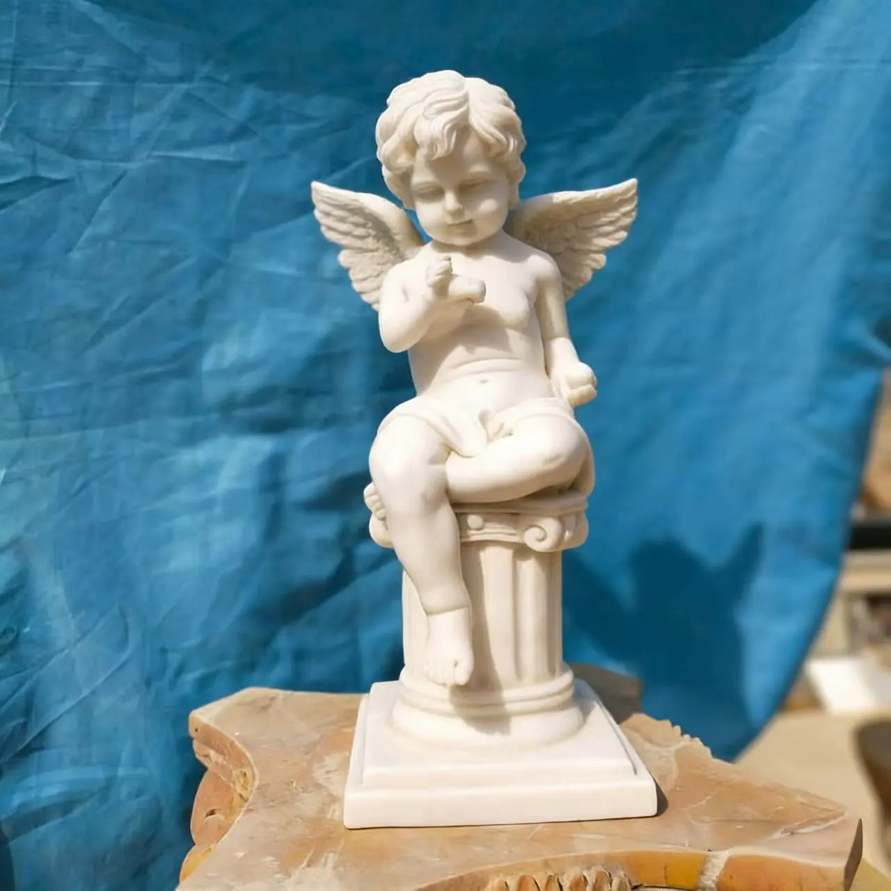 Sculpture Introduction: White Marble Little Angel (Cupid) Figurine This is a small angel sculpture in the European classical style, often referred to as Cupid or Cupid Angel